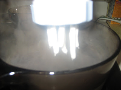 3. Place the flour bowl into the boiling pot, and keep stirring until the flour mixture is about half way thick for about 3 minutes.
